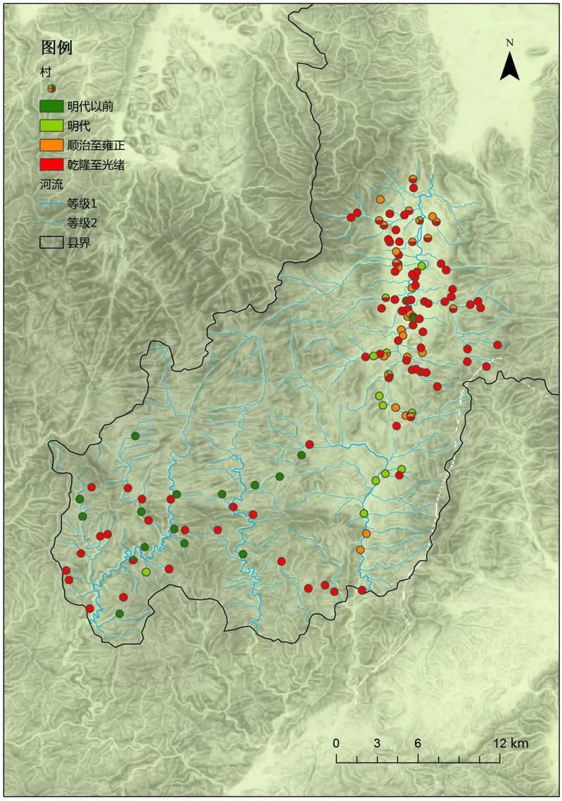图5:各村落姓氏的始祖迁入时间