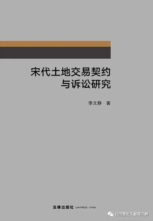 从法制史视野切入的研究成果,有陈敬涛著《敦煌吐鲁番契约文书中的群体及其观念、行为探微》(北京:中国政法大学出版社,2013年),研究契约主体双方身份,契约中保人的各自特征和变迁,对立契主体的思维和行为方式进行了概括。杨卉青著《宋代契约法律制度研究》(北京:人民出版社,2015年),梳理中国古代契约的概念和契约形式,探讨了宋代契约的种类和各类契约适用范围、订立原则、形式规范、履行和消灭的规定。刘高勇著《清代买卖契约研究——基于法制史角度的解读》(北京:中国社会科学出版社,2016年),从国家成文法、司法实践、民间习惯的多重视角,对清代的买卖契约进行分析。范一丁著《古代契约法史稿》和《近代契约法史稿》(北京:法律出版社,2017年、2019年)对中国古代和近代契约法存续情况进行了较为系统的整理和归纳。李文静著《宋代土地交易契约与诉讼研究》(北京:法律出版社,2019年),考察了买卖、典当、倚当、抵当、租佃等宋代土地交易类型、形式和内容,形式包括:单契形式、官版契纸、投状申牒、批凿过割、砧基簿、批领、先问亲邻、中人牙人;内容包括:主体、标的、价格、时间、当事人签押。