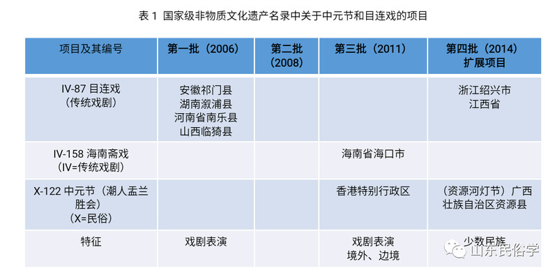 19世纪末以来,宗教性的节日受到反迷信和非物质文化遗产这两个跨国的、全球的话语影响。2006年开始的非物质文化遗产保护运动可以说是这两个观念的反映。2006年,春节、清明节、端午节、七夕节、中秋节、重阳节被列入第一批国家级非物质文化遗产名录。2008年,元宵节也由文化部申报并登录为国家级非物质文化遗产。和灵魂救赎有关的中元节,在2011年由香港潮属社团提出,以“潮人盂兰胜会”之名被列入第三批国家级非物质文化遗产名录的“民俗”类中。2014年,广西壮族自治区资源县的“河灯节”被列入为中元节扩展项目。至于和灵魂救赎有关的目连戏、斋戏等仪式戏剧,则以传统戏曲名义入选国家级非物质文化遗产名录。由此,作为传统中国八个最重要的节日之一的中元节,重新进入国家的视野。