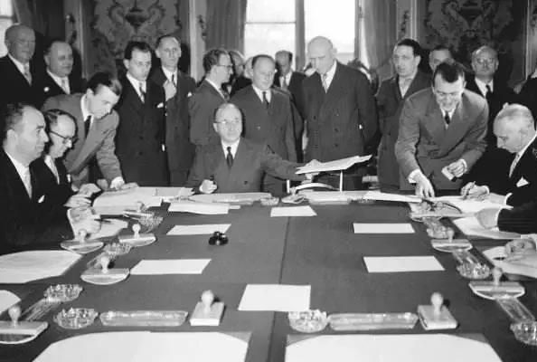 一个统一的欧洲,曾经是几个世纪欧洲人的梦想,康德为此写过《永久和平论》。然而,历史上统一欧洲的梦想,就像秦始皇统一中国一样,走的都是帝国武力统一的道路,从罗马帝国、法兰克帝国、神圣罗马帝国,到拿破仑的法兰西第一帝国和希特勒的纳粹德国,无不如此。欧洲是现代战争的温床,威斯特伐利亚体系确立之后,虽然结束了中世纪的宗教冲突与战争,但从各个帝国内部独立和分裂出来的新兴民族国家,却因为国家利益的冲突,陷入了新的战争。从19世纪到20世纪上半叶,欧洲国家之间的战争连绵不绝,特别是20世纪以欧洲为主战场的两次世界大战,给欧洲人以很大的刺激。西班牙哲学家萨瓦特说:“爆发在我们这块大陆上的两次世界大战,其悲惨使绝大部分欧洲人都相信,最重要的事莫过于超越民族国家的界限,寻求国际协调,以防止、避免并解决不同利益之间最后所诉诸的冲突”。欧洲人开始反思历史,改变帝国武力统一的传统路径,思考通过和平的合作,建立一个平等的欧洲共同体的可能性。