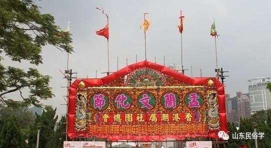 当然类似的倾向并不局限于香港。同样人口集中、寺庙数量多、举行盂兰盆活动的团体非常多的城市,或多或少有共通点。例如新加坡就跟香港的状况类似,各类族群在都市高层住宅里集居,台湾虽然人口不如香港稠密,但在台湾的城市里也有同样的状况。根据洪莹发的调查,台南市中元普度从农历的七月初一持续到八月上旬,期间有130多座寺庙和近邻组织会把各个地区安排好日期,按照次序轮番举行所谓“轮普”的普度仪式。并且在平日中有交流的信徒之间有互相赠送供品的“赞普”习俗。寺庙通过信徒上供给法会的供品数量和丰富程度,来夸耀自身的社会影响力和关系网络。但是因为在台南举行普度的社会团体大多属于闽南系,几乎没有发现像香港那样强调族群礼仪和祭祀习俗差异的现象。