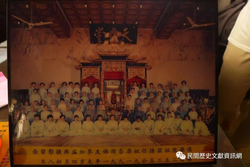 圖四:南山系天德堂陳慎謙祖師接任祖位之照片。筆者攝於天南佛堂,2017年10月。