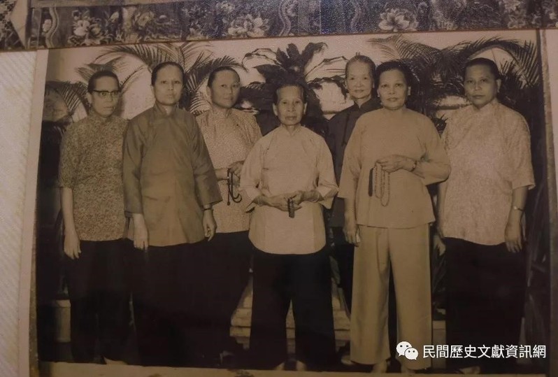 圖三:善福堂齋姑舊照,攝於1965年。左一為善緣堂姑太劉嫦娥,居中為善慶堂姑太胡玉蓮。胡玉蓮姑太的照片見於善福堂,神主牌位也見於檳城大圓佛堂。釋善森法師提供,2017年10月。