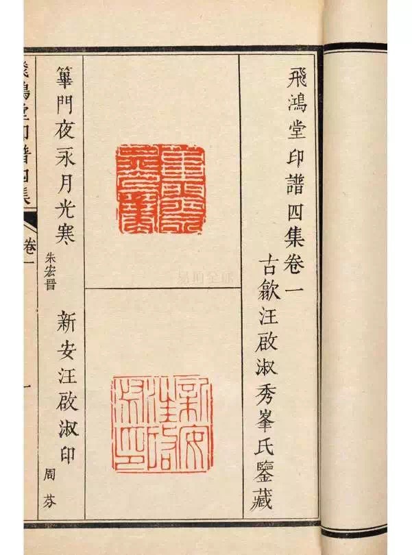除了《飞鸿堂印谱》之外,汪启淑还有《飞鸿堂砚谱》《飞鸿堂墨谱》《飞鸿堂瓶谱》和《飞鸿堂鼎炉谱》等,表现出他对文房清玩的广泛兴趣。此外,他同时还是位出版商。清人王昶在《汪秀峰〈田居杂记〉序》中指出: