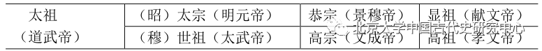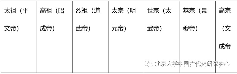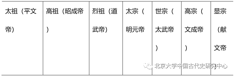 在北魏庙制变迁过程中,庙号呈现出不避重复的现象,如平文帝、道武帝同为太祖;昭成帝、孝文帝均号高祖;太武帝初为世宗,宣武帝庙号与之不异,可谓华化过程的特殊现象。尤其是在政治博弈过程中,庙号不避太祖、高祖也具有特殊的政治与文化意义。