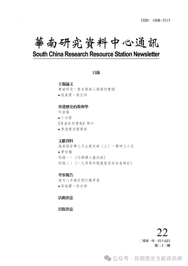 (本文經作者授權發佈,原載《華南研究資料中心通訊》2001年1月第22期,頁1-3,引用請參考原文。)