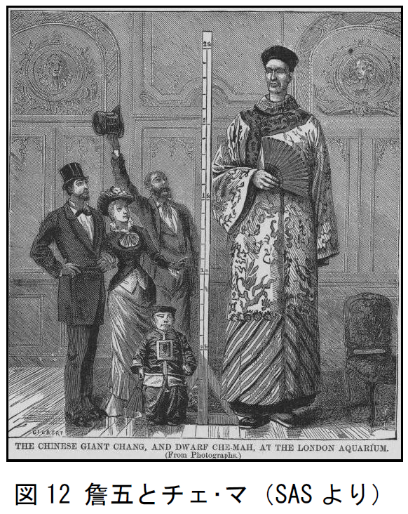 張徳彝とバックランド、双方の記録を照らし合わせると、巨人と小人、そして女性1人に、侍者2人の組み合わせ、という点において一致している。