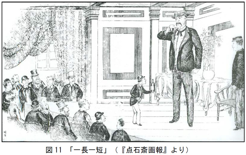 でははじめに、『点石斎画報』より「一長一短(ノッポとチビ)」(図11)という記事を取り上げることとしよう。