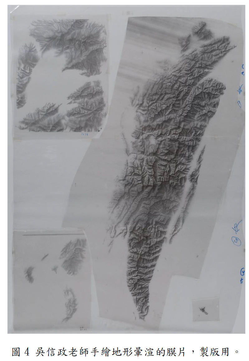 我跟吳老師在臺北相見時,吳老師已經接近退休年齡。他退休前,將助理邱小姐轉介到賴老師處,也跟我說研究室所有的地圖可以任我拿取。那時我正在臺灣歷史博物館工作,我跟吳老師說,這麼多製作地圖的工具、製版膠片、地圖集和地圖(包含吳老師自製的與收藏的),我當然是很想要,但是個人能收藏的量實在太少,把它分割了很可惜,不如我經手全部捐贈給博物館吧,吳老師欣然應允,於是幾千件地圖和器材就都交給了臺史博。這些物件後來都由我整理編目,整理後再請吳老師確認,並邀吳老師到館演講,演示手工噴槍製作地形暈渲的流程,算是給臺灣地圖製作史做了一份記錄,也印證了吳老師與我兩代的地圖情誼。