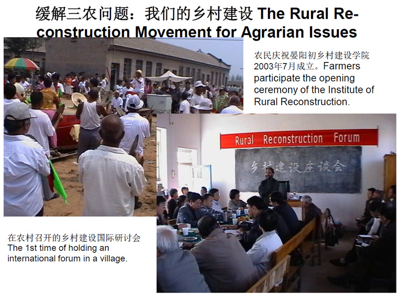 最近这些年,我们利用“国家推进新农村建设战略”这样一个历史性的机会,开展了一些去激进的、和这百年来现代化进程有关的农村基层工作,其中有很多工作本来可以叫做“乡村复兴”。我们之所以叫乡村建设,是沿用了以前使用的概念,但是,实际的内容是一个文化意义上的全面复兴,也是一个多元化的社会群体在乡村建设这个大平台上,互动、交流、包容,最终走向社会大众民主的这样一种社会运动过程。