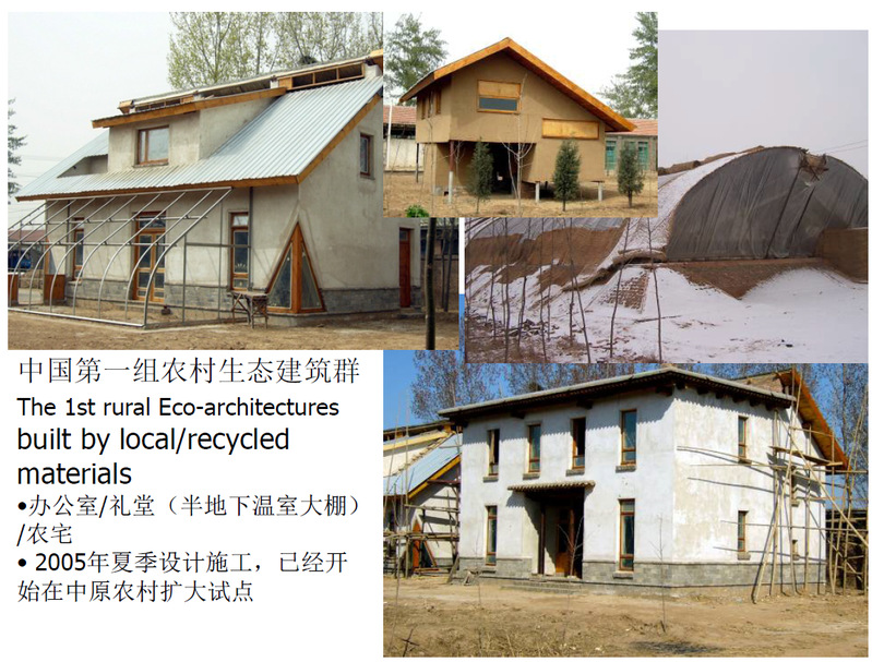 台湾的谢英俊建筑师帮我们在村里的乡村建设学院建立起来一套生态建筑,因此我们就有一套立体循环农业和生态建筑的全生态乡村建设学院。我们的农业是六位一体的,生态厕所和沼气池转化排泄物,生态大棚里面养猪种菜,我们挖了土堆成山种果树,池塘养鱼,还有露天菜地,旁边就是生态建筑。这个是没有任何现代建材的,它是石料、木料和夯土形成的建筑。这些生态建筑冬暖夏凉,右边是生态礼堂,是个半地下的,冬天不用生火,夏天不用空调,冬天盖上点稻草就保暖了,这样一个生态礼堂能容纳400人。