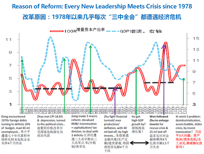 我去年(2013年)出版的一本书,叫做《八次危机》,把中国从1950年以来60年的发展过程归纳为八次周期性的经济危机。它并不特殊,它只是一个因大量引入了外资而不得不还债,而还债引发赤字,赤字引发投资不足,投资不足引发不能就业,然后怎么去解决的问题。我们能解决就是因为庞大的农村承载了危机代价,它是一个劳动力蓄水池、资本池,资本池的代价不由资本自己承担,而转嫁给了其它。