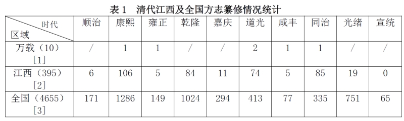 [3] 全国数据统计来源于林天蔚:《地方文献研究与分论》的“清代地方志分类统计表”,北京图书出版社2006,第40-41页。林天蔚的统计数据中还包括年代未详者90种。