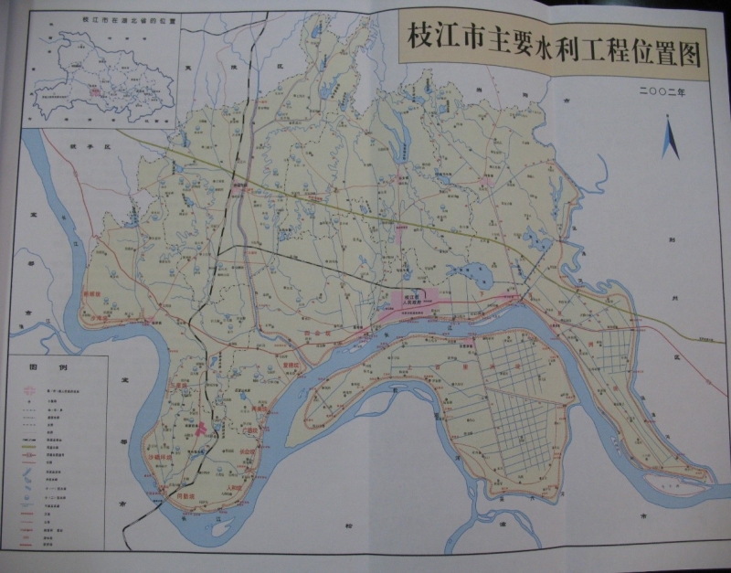 图1 百里洲的地理位置和水利状况图(图片来源:枝江市水利局)
