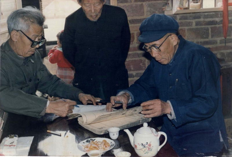 图2 修谱·读校(雾阁,1996年,刘永华摄)
