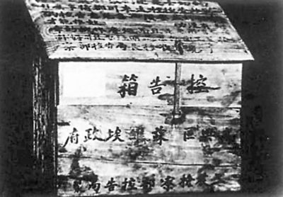 工农检察部是在1931年11月的第一次全国苏维埃代表大会上通过设定的,专门针对国家公职人员进行检举与揭发,是工农检察部的主要职责,而控告局及其所设置的控告箱,则构成了检举揭发的实现机制: