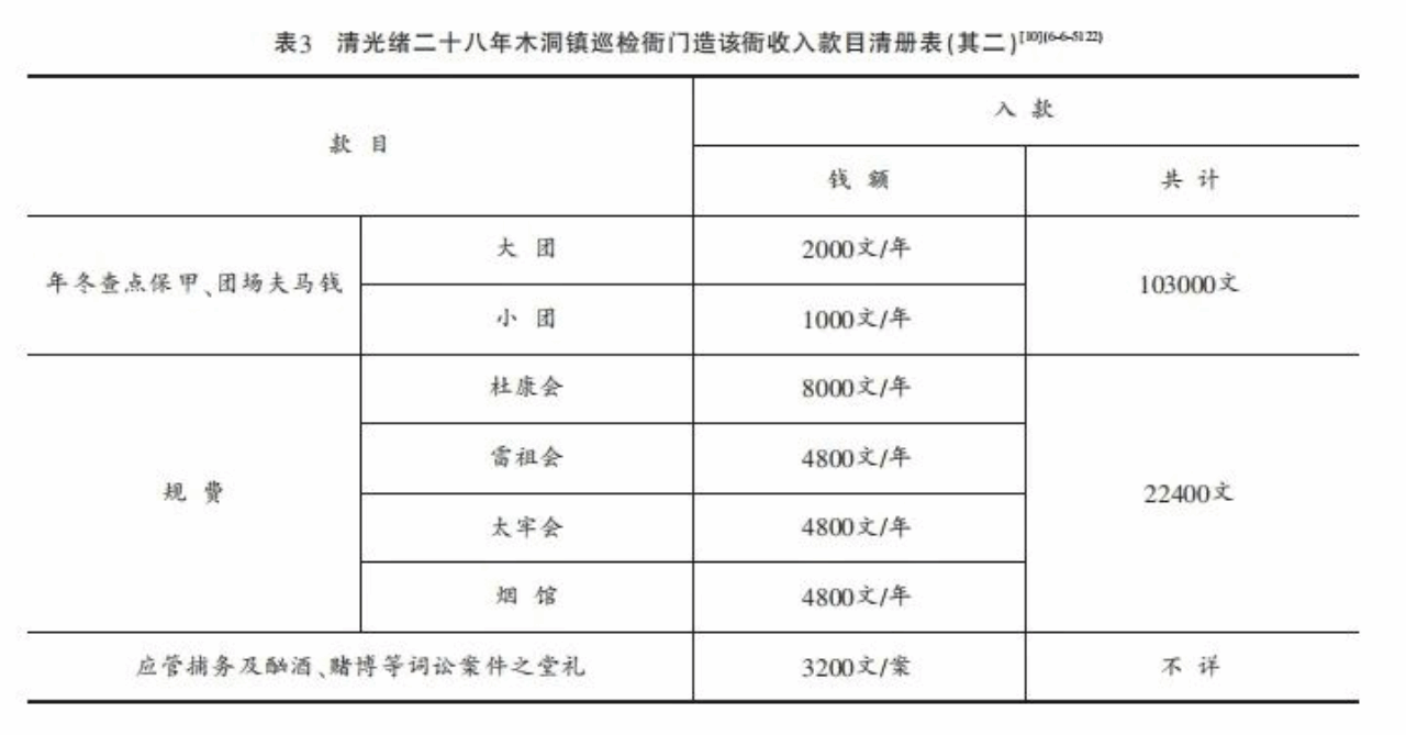 晚清时,此类点团夫马、酒席等亦渐有由三费等公局局费支发的趋势。同治九年南川县三费局创设时,该县典史“有捕盗之责,向无捕盗之费,酌议由局中每月帮钱二十千文,以为下乡捕盗之费”,该县汛“有查拿匪徒以及私枭私贩、私宰耕牛等项之责,向无经费,酌议由局中每月帮钱十五千文,以为下乡查拿夫马之费”。光绪六年,南部县汛称“查汛署历来向有夫马漏规,系每年四七十三个月查场三次,每次收受各场夫马钱三百余千文,每年三次约收夫马钱一千串之谱”,并自请裁革此项夫马漏规,但随即在光绪七年,南部县三费章程中载三费局须得“每月支送汛厅巡缉公费钱十五千文”,再后三费局款浮冒滥支,到宣统时改由学田局年“支汛厅帮费去钱一百千文”,这表明南部县实际是以三费、学田等公局支送巡缉公费代替收受查场夫马漏规。