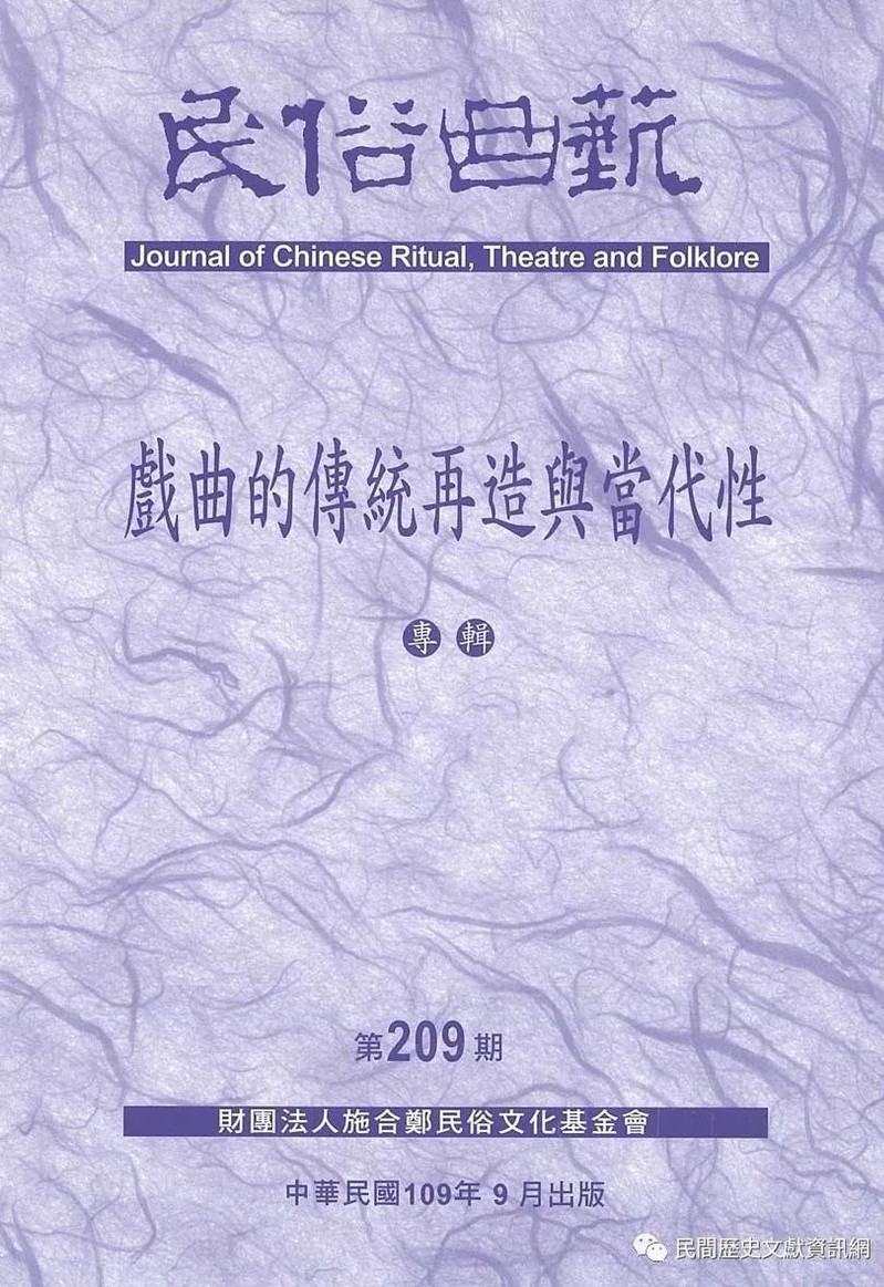 Fu Yu-hui. “The Aesthetics of Canonization in Traditional Taiwanese Opera since 1990s.” Journal of Chinese Ritual, Theatre and Folklore 209 (2020.9): 67-110.