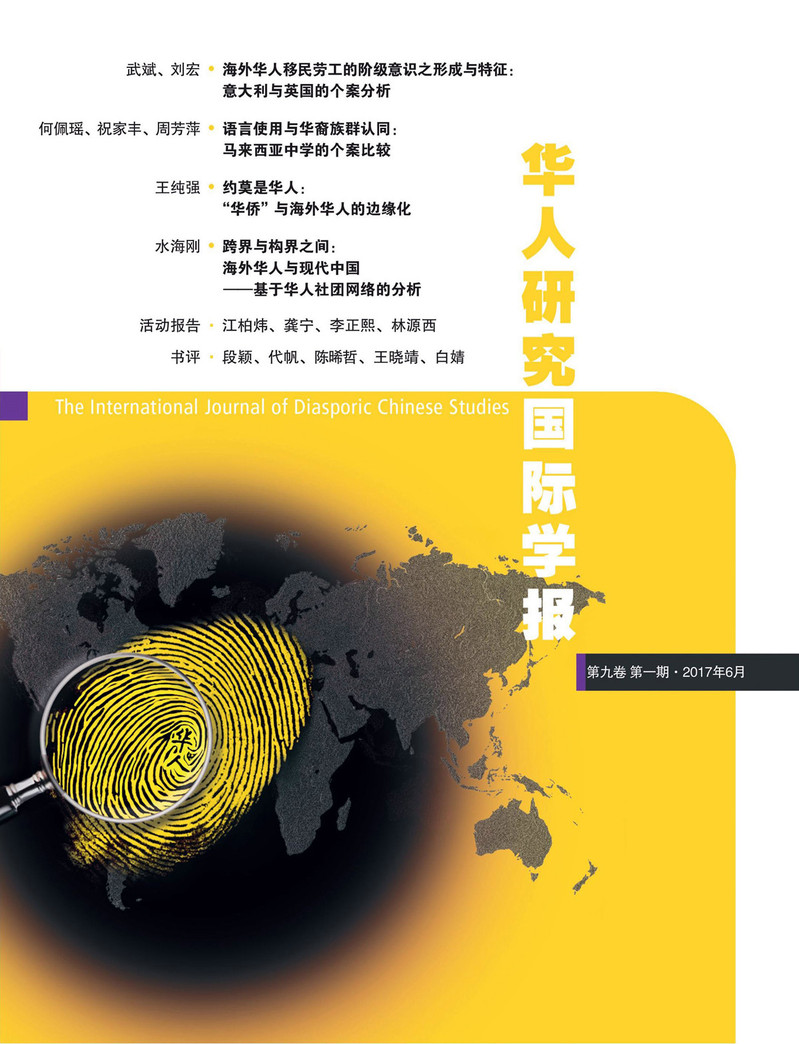 本期内容包括三篇学术专论、一篇研究述论、三篇活动报告以及五篇书评。本期的学报,承继之前几期的发展方向,在选稿上兼顾不同阶段的学者及各类型的研究课题,力求呈现学报多元化的特点。刘宏教授和武斌博士合写的〈海外华人移民劳工的阶级意识之形成与特征:意大利与英国的个案分析〉提出少数族裔研究中,同种族雇主和移民劳工之间利益矛盾或冲突不能忽略不计。作者利用在意大利和英国田野调查所收集的证据,揭示了华人移民劳工中阶级意识形成的背景条件、表现方式、作用范围,及其对海外华人研究的意义。何佩瑶、祝家丰、周芳萍的〈语言使用与华裔族群认同:马来西亚中学的个案比较〉着眼于多元化的语言学习环境和语言使用方式,探讨对华裔中学生的族群认同建构的影响。王纯强的〈约莫是华人:“华侨”与海外华人的边缘化〉另辟视角,把我们带到“华侨时代”,中国民族主义的兴起及其对海外华人认识的转变。通过梳理有关历史事实和文献记录,揭示了“华侨”这一称谓流行背后的政治维度、形象建构、情感维系功能,拨掉套在“华侨”群体上的殷实富裕、忠贞爱国的光环。水海刚的〈跨界与构界之间:海外华人与现代中国——基于华人社团网络的分析〉从历史演进的角度,探讨海外华人社团,通过社会网络建设,实现经济捐献、投资、人员参与及其观念、信息的跨界共享,从而推动中国大陆的社会变迁和发展。三篇学术会议综述有,江柏炜的〈“‘中华文明与东亚’学术会议暨论坛”综述〉,介绍由台湾中华文化总会主办会议、台湾师范大学东亚学系承办的会议情况,与会者既有来自东南亚地区的华人侨领交流当地情况和社区经验,又有华人研究专家学者就中华文明的普世价值及其多样化表现方式的专题讲演。龚宁、李正熙的〈“仁川中华街照片展:老街巷,小故事”纪实〉,则记述了由韩国国立仁川大学、清华大学华商研究中心、清华大学图书馆、中国华侨历史学会联合主办的韩国华侨历史和生活照片展,对研究韩国华侨、中国城、东亚贸易史有重要的意义。林源西的〈“第一届国际移民与海外华人丽水论坛”综述〉,较为详细地介绍在浙江丽水华侨学院召开的此次国际会议的主题、主要内容和观点,涉及“一带一路”、跨国移民、移民网络、文化传播、新移民的社会融入等议题。本期刊载五篇书评,选取了两部英文著作和三部中文著作。这五本著作从历史、文学、经济、社会、文化等角度探讨了海外华人研究领域所关怀的一些主题。